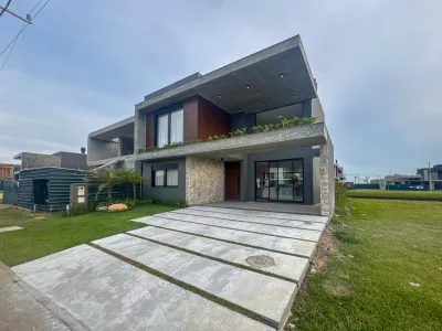 Lindo sobrado de alto padrão, totalmente mobiliado, composto por 4 suítes, amplo living com dois ambientes e lareira, lavabo, cozinha integrada ao espaço gourmet, área de serviço e excelente padrão de acabamento.