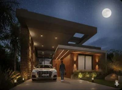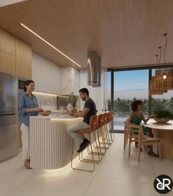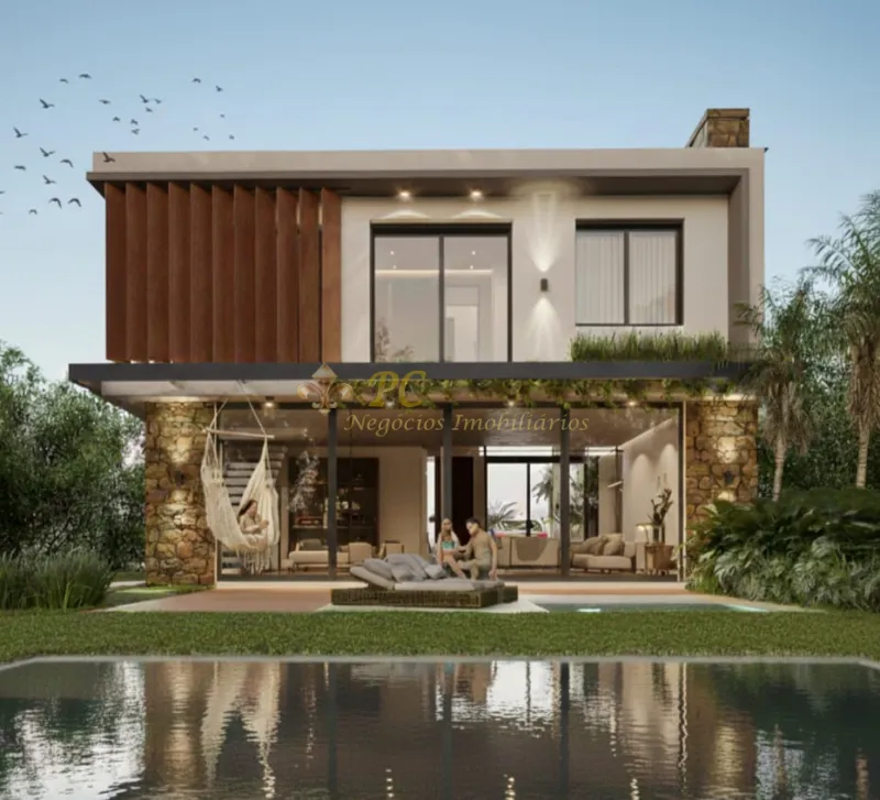 Casa 3 suítes amplas, com excelente iluminação e ventilação. Suíte master com banheira e vista permanente para o lago. Arquitetura leve e integrada ao entorno. Revestimentos e materiais pensados para durabilidade e conforto térmico. Ambientes integrados que favorecem lazer e convivência. Lote molhado localizado na parte larga do lago. Integração entre área social, espaço gourmet e área externa. Pé-direito alto e grandes aberturas em vidro, ventilação cruzada e excelente iluminação natural. Sala de estar e jantar integradas, com vista para o lago, Cozinha gourmet integrada. Espaço gourmet coberto.