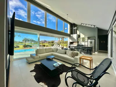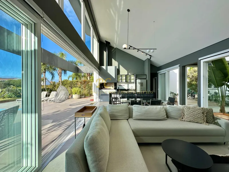 Casa mobiliada e decorada, com 230 m², em lote de 900 m², localizada no Condomínio Green Village. Possui 04 suítes, living em 3 ambientes com lareira, lavabo, espaço gourmet, lavanderia, piscina em concreto e garagem para 2 carros.