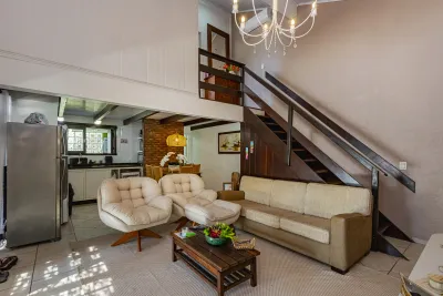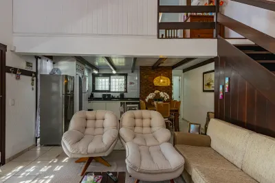 Sobrado no Centro de Xangri-Lá com 03 dormitórios, sendo 03 suítes, Mobiliada, Sala de estar, Churrasqueira, Piscina, 2 vagas para carro, área total 360m², área privativa 113m², orientação solar frente oeste.