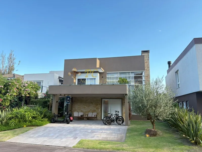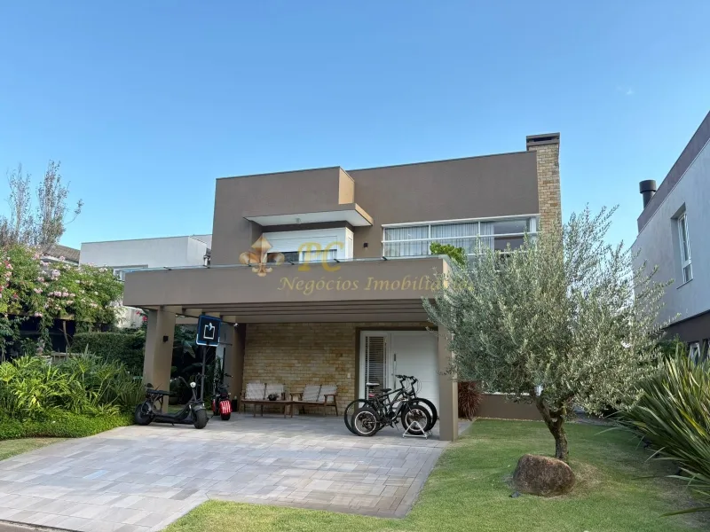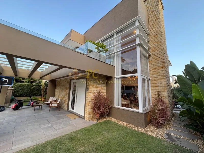 São 4 suítes amplas, sendo uma térrea, oferecendo praticidade e acessibilidade. O living com lareira integrado ao estar com pé-direito duplo traz imponência ao ambiente, além de garantir iluminação natural e sensação de amplitude.